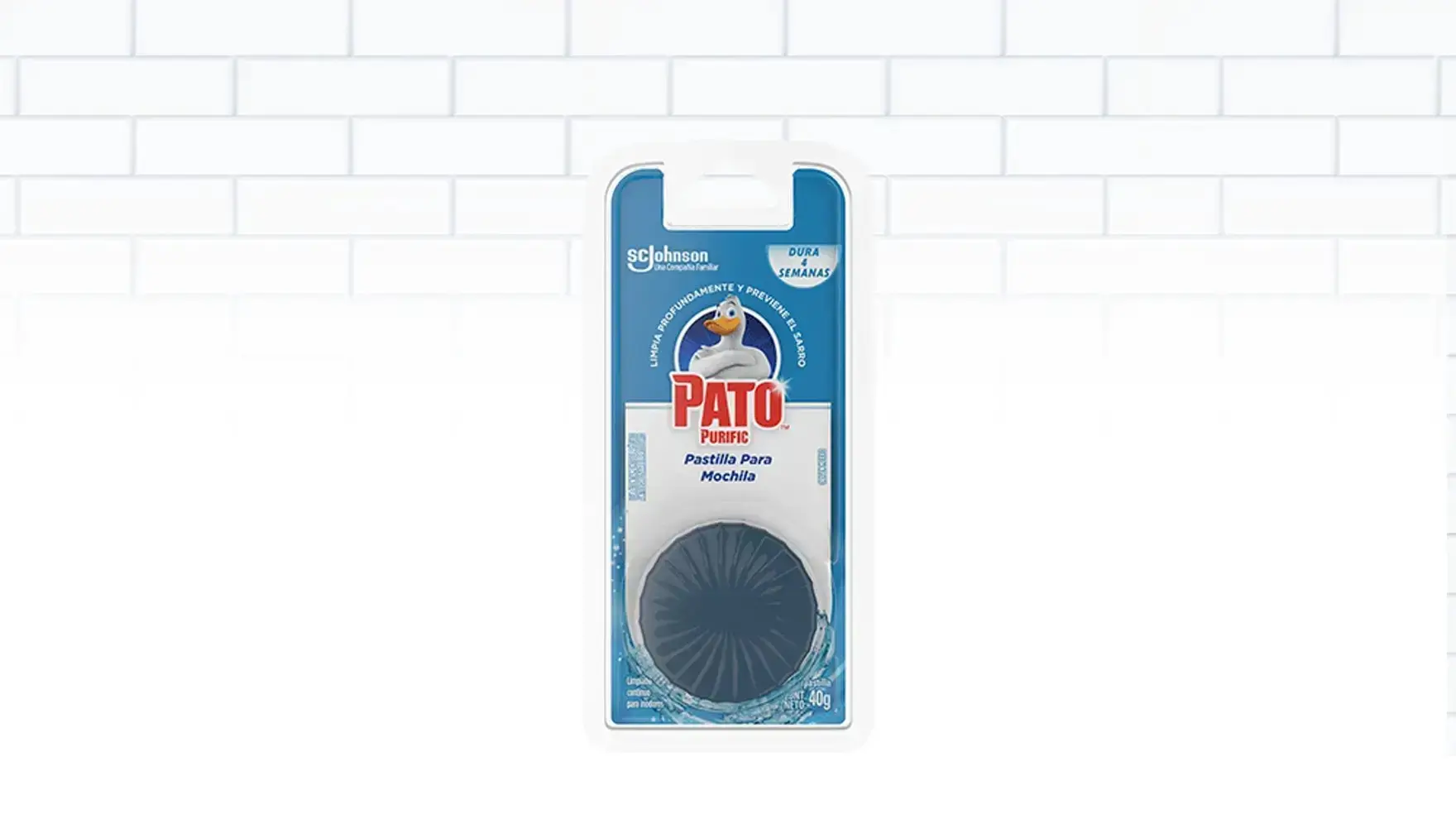 La Pastilla para mochila Pato Purific® mantiene fresco y limpio el inodoro, y previene al mismo tiempo que se acumule el sarro. Y deja un aroma exquisito.