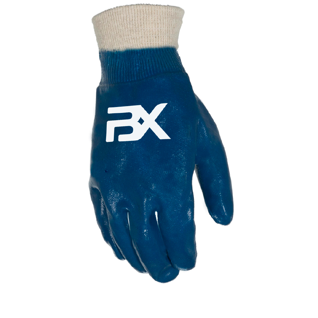 Guante recubierto en nitrilo pesado.