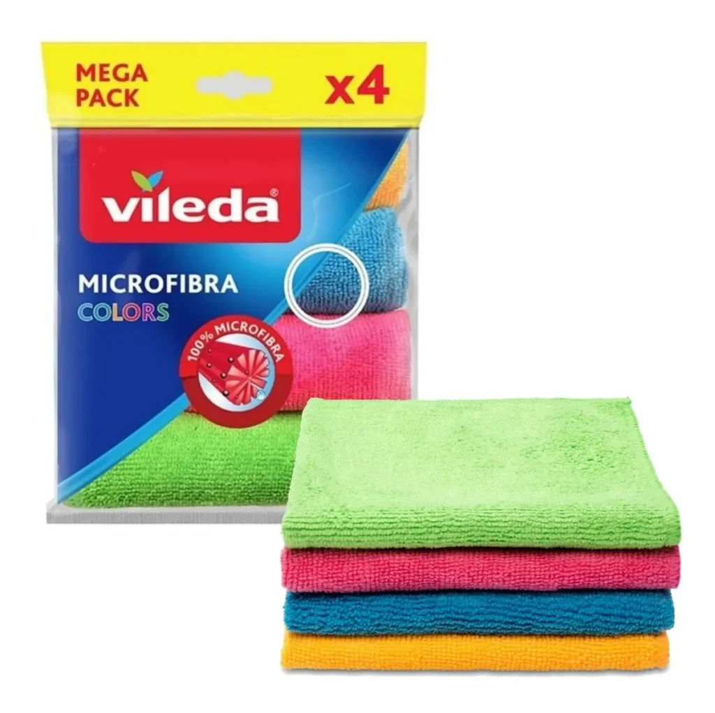 Paños de microfibra multiuso x4 unidades, ofrecen máxima absorción, secado ultra rápido y atrapan el polvo. Sus fibras ultradelgadas, que trabajan a través de estática, permiten remover y eliminar más suciedad que un paño convencional sin dejar residuos. También gracias a sus fibras microscópicas, tienen más puntos de contacto con la superficie y absorben más agua que las demás fibras.